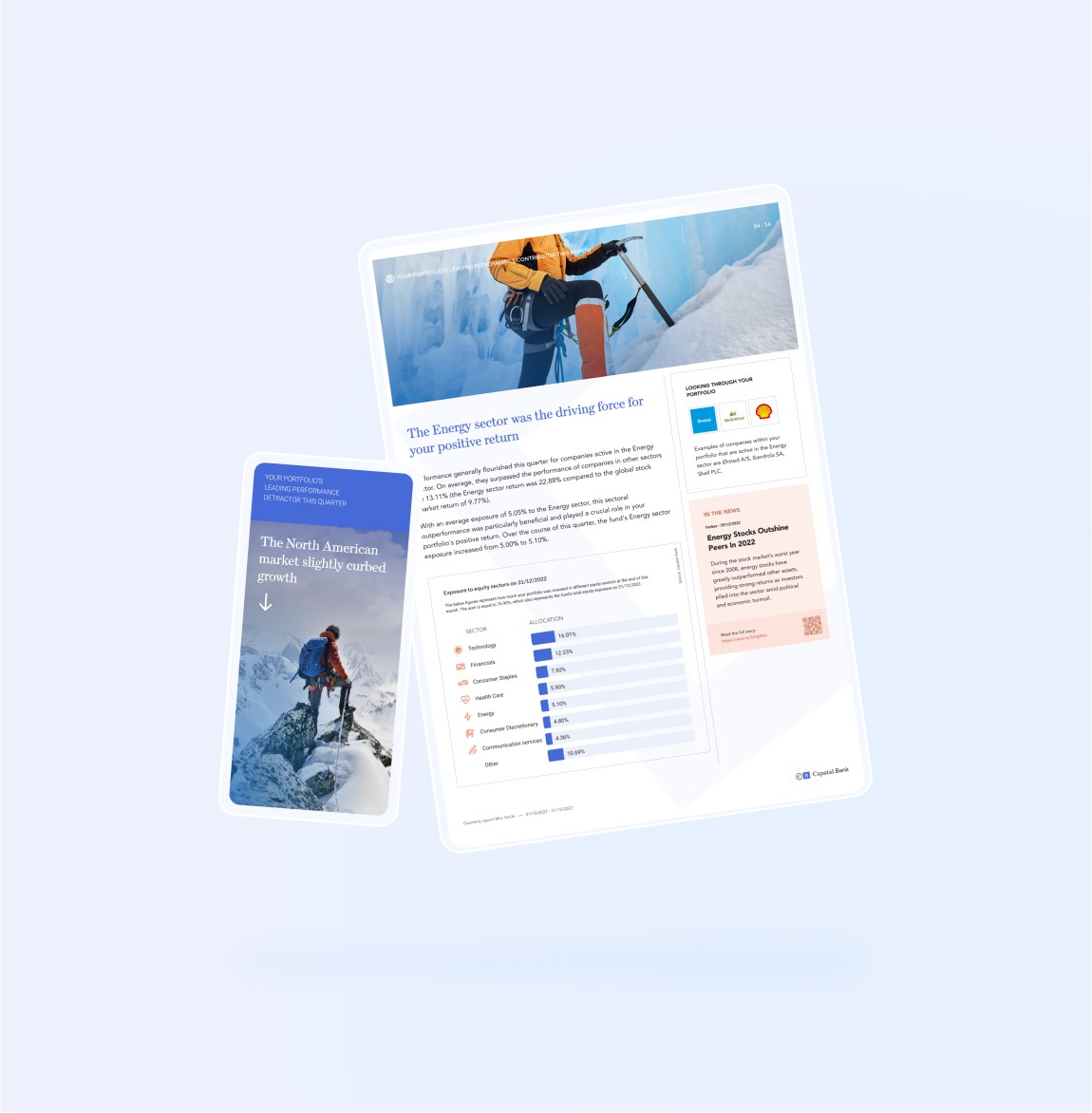 A reporting tool that transforms investment reports into engaging stories. It automates portfolio and fund performance explanations, making financial insights clearer for investors.