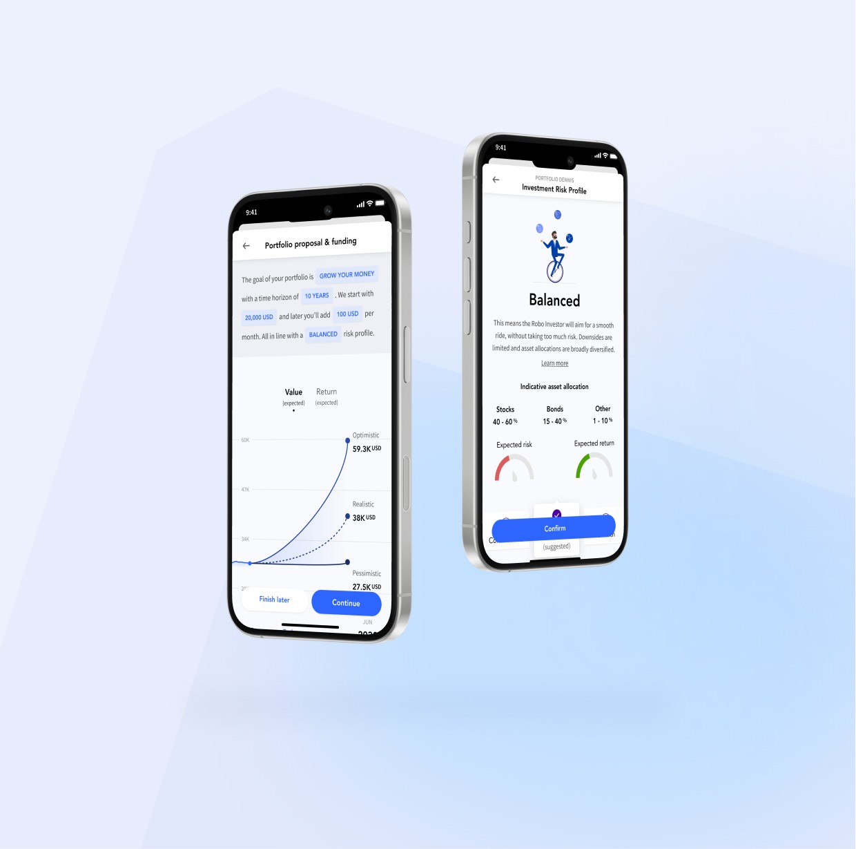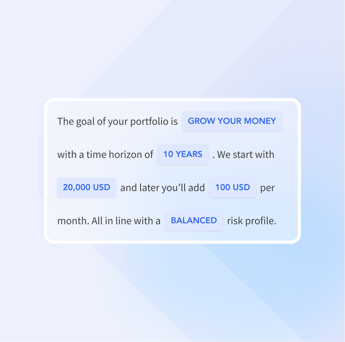 The intuitive onboarding experience features powerful re-engagement functionalities. Through personas, customers can first explore the automated investing experience.